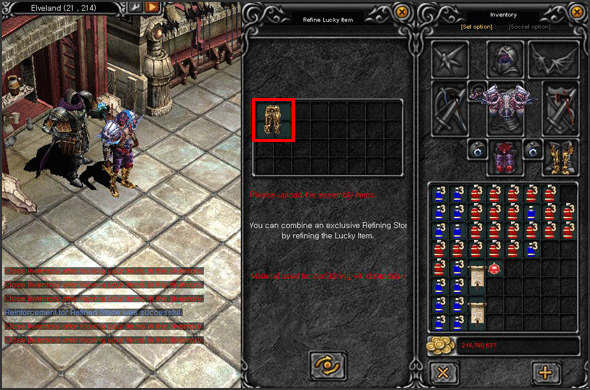 Click on the "Refine Lucky Item" button