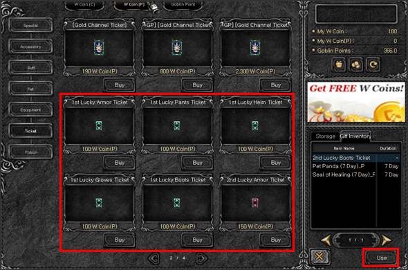 Purchase Luck item ticket and click on the "Use" button