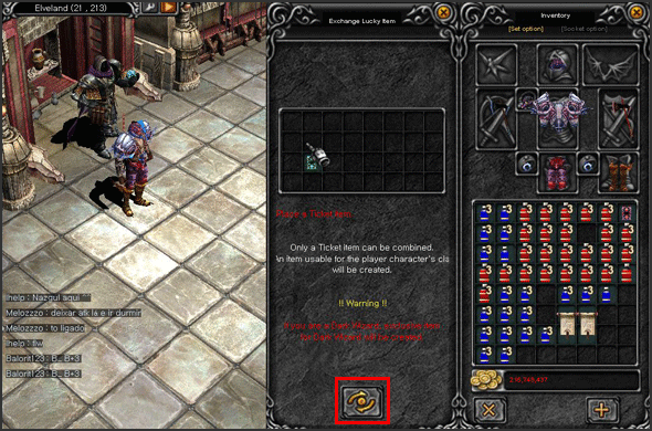 Put Lucky Item Ticket and click on the combination button