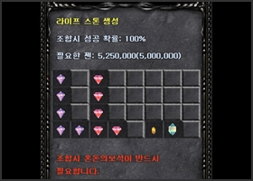 Life stone formula = Jewel of bless 5 + Jewel of soul 5 + Jewel of guardian 1 + Jewel of Chaos 1 + 5M zen