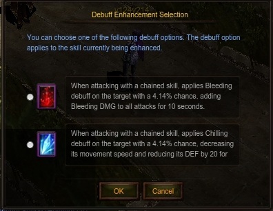 ③ If you select / enhance a debuff, it will be linked to that enhancement skill. The debuff option will then apply when the skill is used.