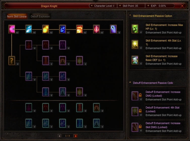 ② Debuff Enhancement Passive Options unlock at three levels, and they can be enhanced by 10P per level (30P max).